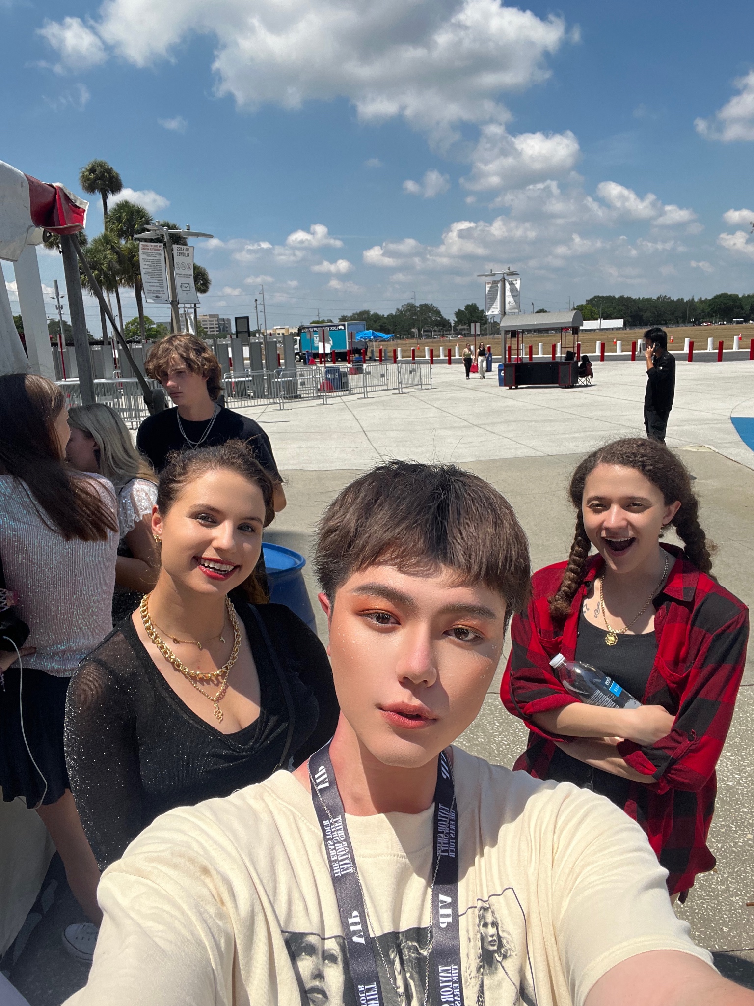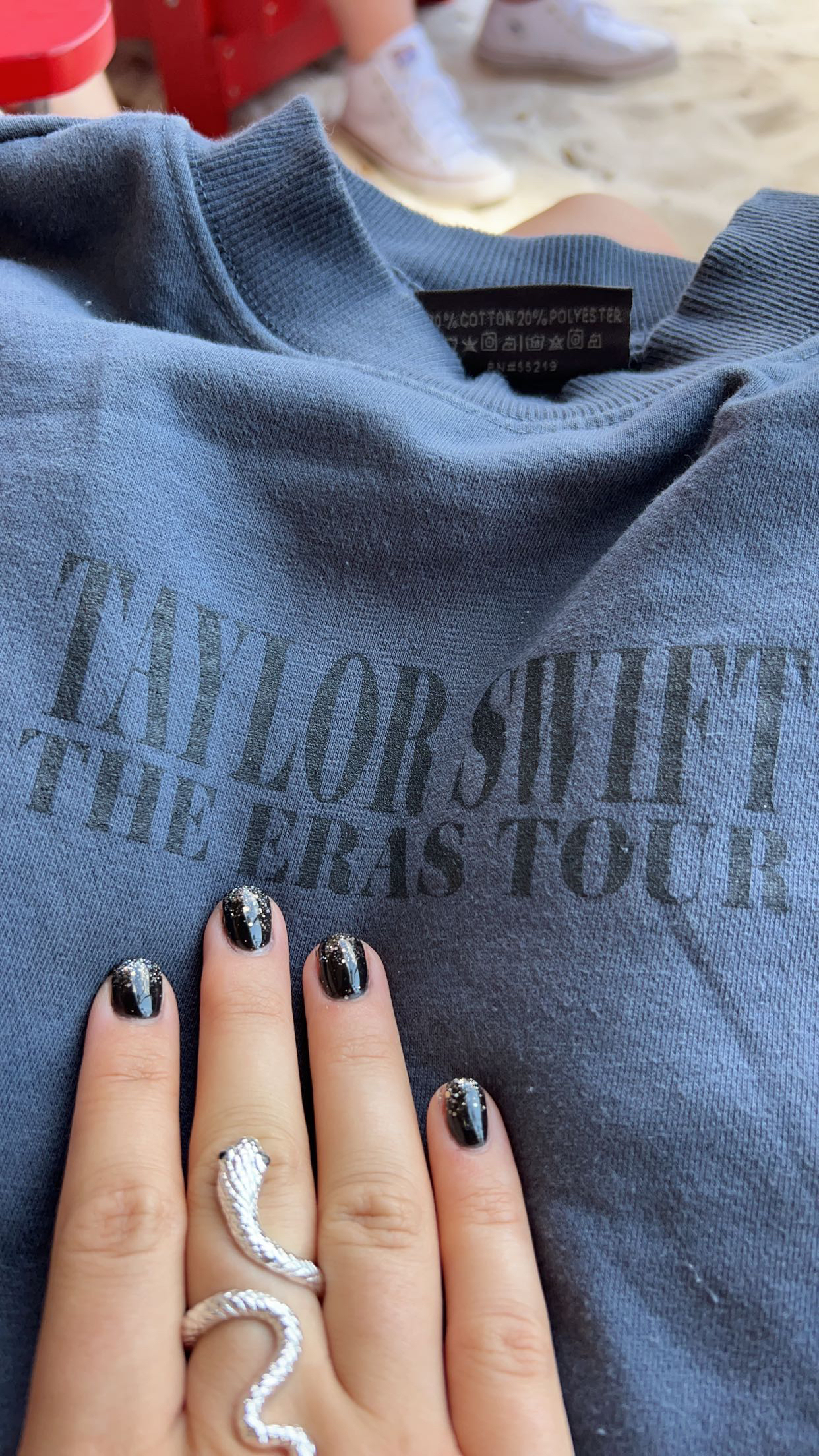The experience of getting tickets for the show was to put it plainly, a nightmare. Thankfully, we had a few shows ahead, and we knew to prepare for long lines to get merch. My friend from graduate school went ahead and scouted out the place to get the “rare” blue crewneck. We got to the stadium early to secure our place in line and waited a few hours before the merch stand opened. It was hot and sunny. We were sunburned and had a great time bonding over the “Merch War” and “Ticketmaster War.”